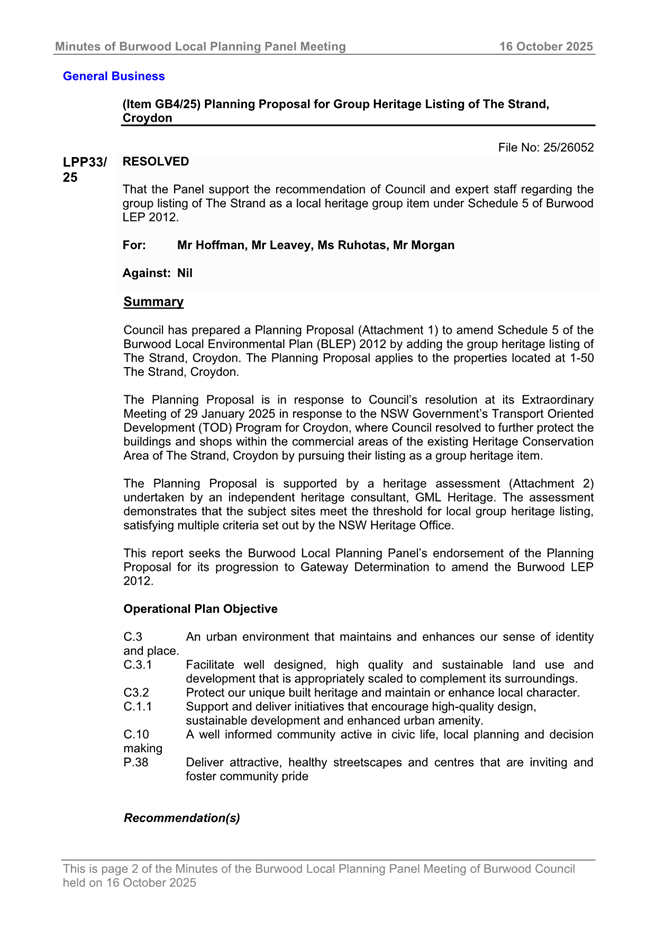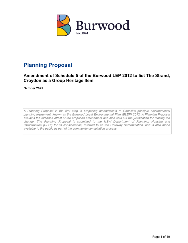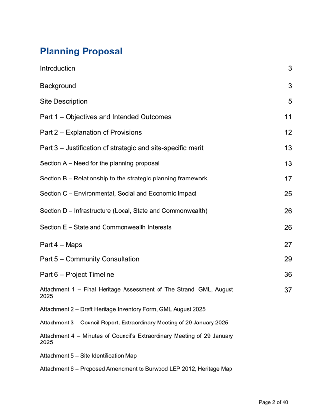 (Item 11/26) Endorsement of Planning Proposal for the Heritage Listing of The Strand for Submission to DPHI for Gateway Determination.................................... 11