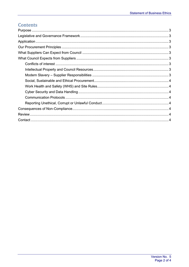 It is proposed that Council adopts an updated Statement of Business Ethics to guide suppliers on the standards and expectations of suppliers when conducting business with Council.