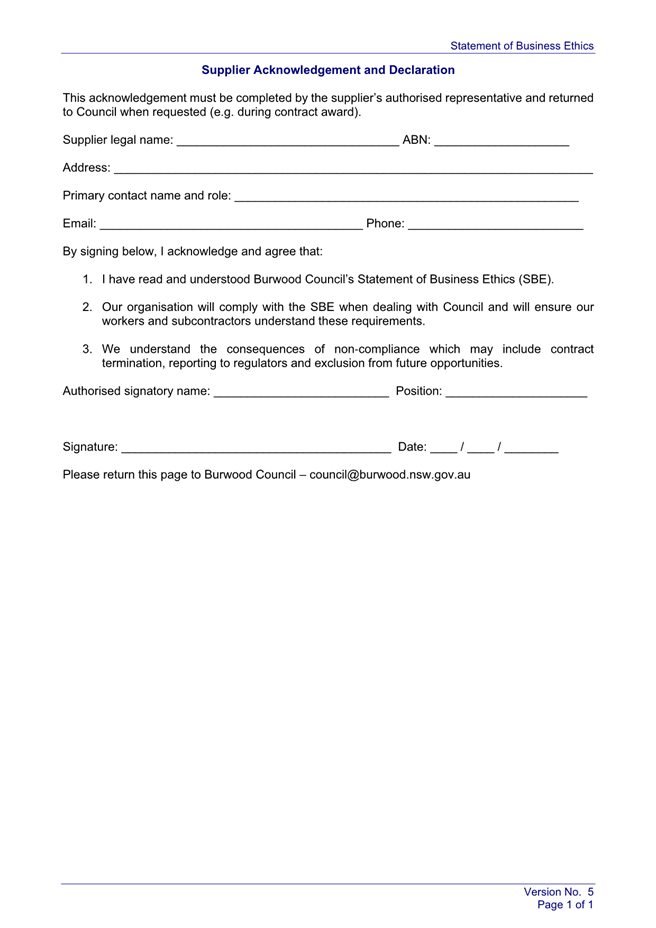 3⇩ Statement of Business Ethics - Supplier Declaration Template